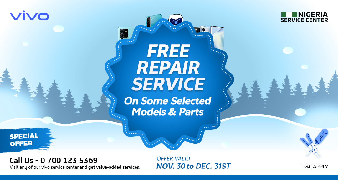 vivo is committed to providing you a delightful and surprising service experience. We are pleased to announce our complimentary free repair services on some selected model spare-parts. Offer is available until stock last. Visit our authorized Nigeria vivo Service Centers.