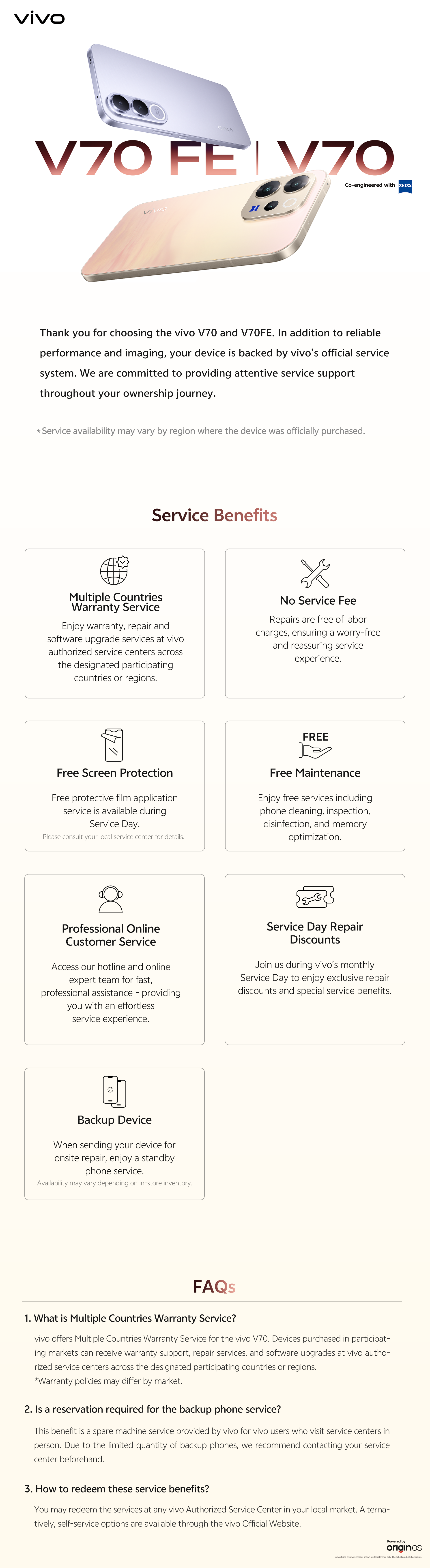 vivo V70&V70FE Caring Service Benefits