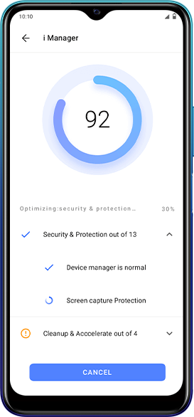 Внимательный iManager освобождает пользователей vivo от скучных повседневных дел. Настройте его для выполнения таких задач, как очистка памяти или диагностика смартфона в ночное время. iManager позаботится о вашем устройстве, пока вы будете отдыхать.