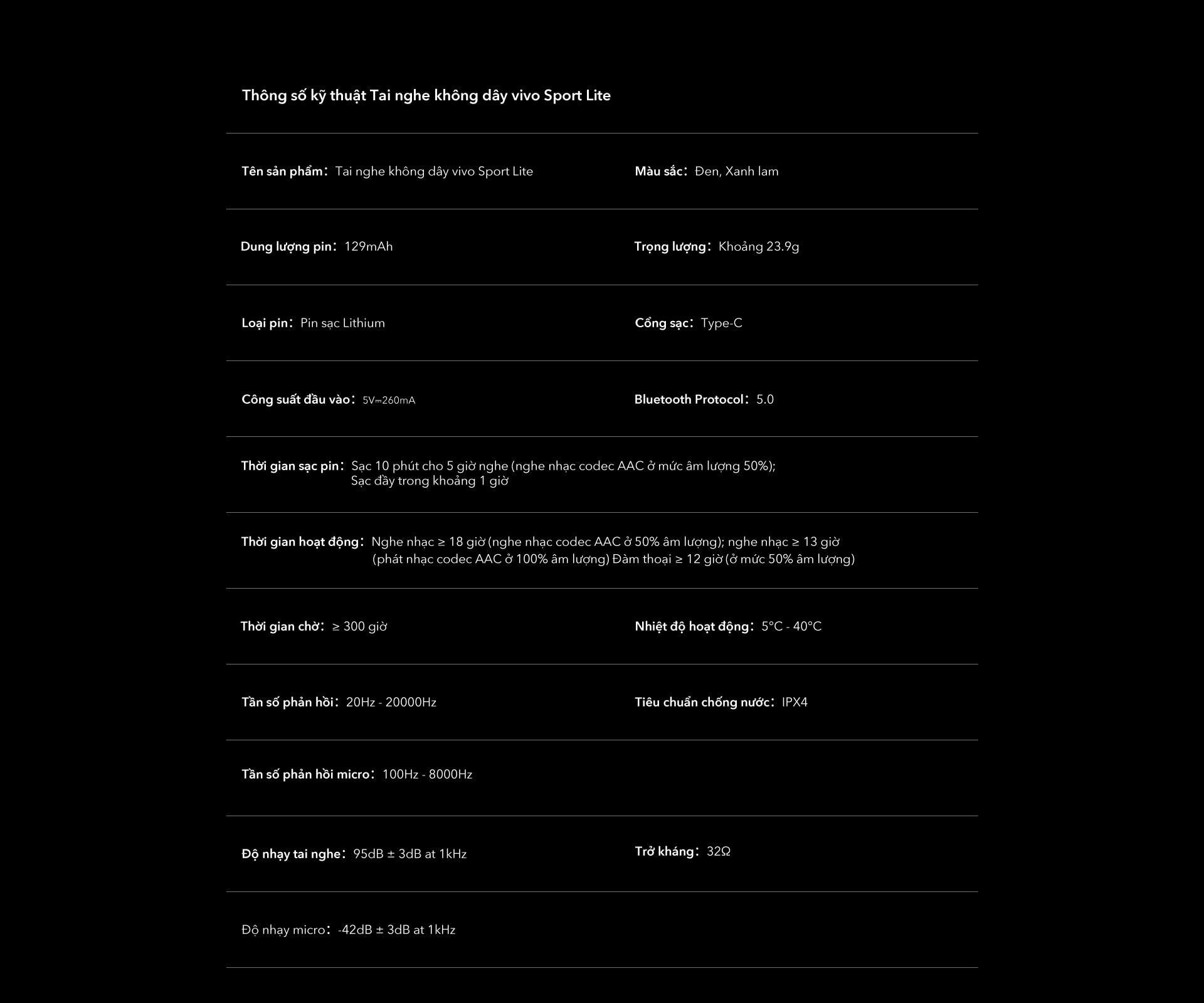 • Tai nghe không dây vivo Sport Lite